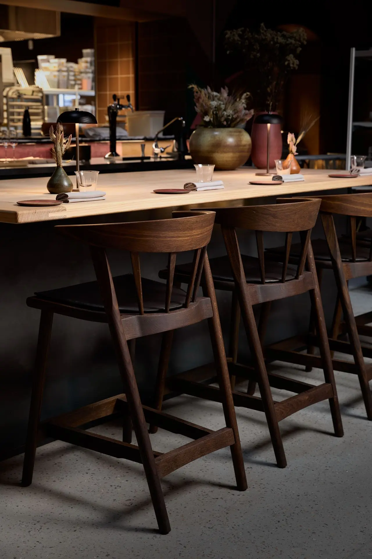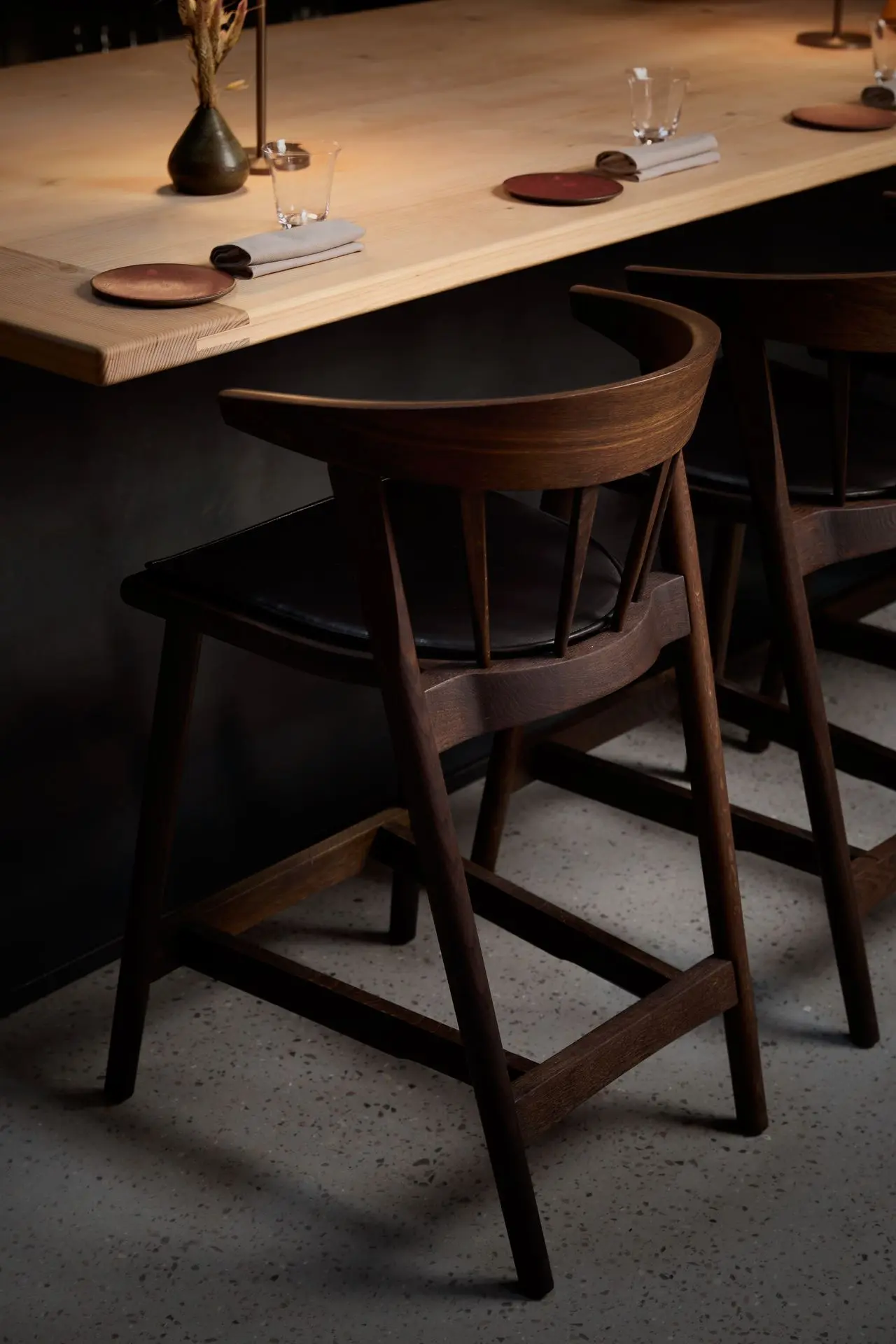 Vi lærte Matt at kende igennem Nanna Thor, fra Thors Design som introducerede ham for vores stole. Og i takt med samtalen udviklede sig blev vi enige om at udvikle en barstol til projektet der kunne indgå i vores faste sortiment for at matche Faldsled Stolene i røget eg.